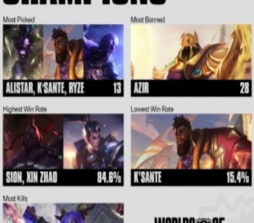 世界赛BP数据:沙皇被ban28次最多赛恩、赵信85%胜率最高