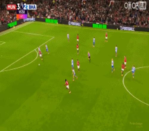 第34分钟,卡塞米罗弧顶处抽射破门,曼联2-0布莱顿