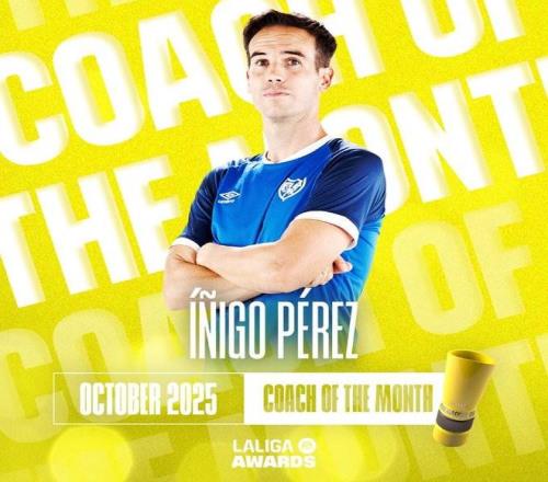 伊尼戈-佩雷斯被评为西甲10月最佳教练,巴列卡诺在这个月表现出色,连续赢得3场比赛,他们在客场以1-0击败了皇家社会,又以3-0战胜了莱万特,并在主场以1-0战胜了阿拉维斯。