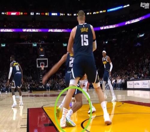 当时上半场的时候,出现了一个非常无语的场面,约基奇本来站在底线防守,他的队友,双向合同的琼斯在防守时竟然一脚踩到了约老师左脚的脚踝上,导致约基奇的脚踝立刻出现严重的伤病情况。而且慢镜头看得很清楚,约基奇被裁之后,先是弯曲着膝盖,随后直起了膝盖,明显出现了过度伸展扭曲的动作,一个双向合同竟然把自己的核心球员给干废了,这是真的太无语了。