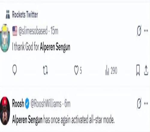 火箭队记兰德里-宾克利赛后写道:申京完成了所有任务,这也是火箭队在进攻陷入困境的情况下仍能拿下比赛的原因。
