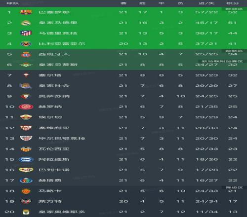 西甲第21轮结束了所有比赛,最新积分榜如下!